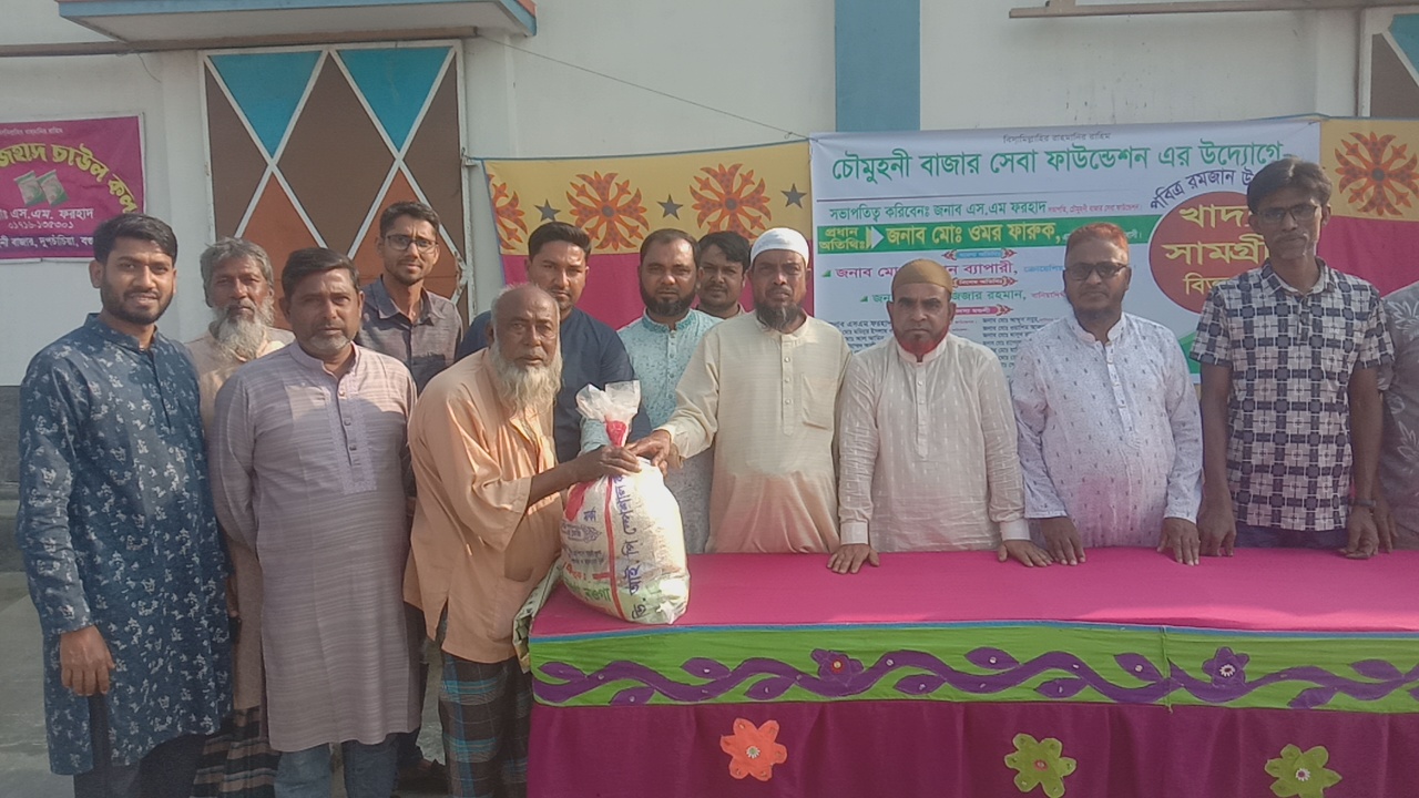 বগুড়ার দুপচাঁচিয়া উপজেলার চৌমুহনী বাজার সেবা ফাউন্ডেশন এর উদ্যোগে পবিত্র রমজান উপলক্ষে ইফতার ও খাদ্য সামগ্রী বিতরণ করা হয়েছে। চৌমুহনী বাজার সেবা ফাউন্ডেশন সভাপতি ও সাবেক ছাত্রনেতা এসএম ফরহাদ এর সভাপতিত্বে, গতকাল রবিবার (১লা মার্চ) বিকেল সাড়ে ৩ ঘটিকায় উপজেলার চৌমুহানী বাজারে স্থানীয় এক চাতালে এই ইফতার ও খাদ্য সামগ্রী বিতরণ করা হয়। এতে প্রধান অতিথি ছিলেন মোঃ ওমর ফারুক, এস, এফ, গ্রুপ সৌদি প্রবাসী, বরেণ্য অতিথি ছিলেন মোঃ রায়হান ব্যাপারী ক্রোয়েশিয়া প্রবাসী ও ব্যবসায়ী। বিশেষ অতিথি হিসেবে উপস্থিত ছিলেন মোঃ আজিজার রহমান বানিয়াদিঘী। এ সময় আরো উপস্থিত ছিলেন চৌমুহনী বাজার সেবা ফাউন্ডেশন এর সহ-সভাপতি মোঃ মমিনুল ইসলাম বাবু, সাধারণ সম্পাদক আল- আমিন, সহ-সাধারণ সম্পাদক মোহাম্মদ আলী, সাংগঠনিক সম্পাদক মোঃ হোসাইন আলী, সহ-সাংগঠনিক সম্পাদক মোঃ সেলিম রেজা, কোষাধক্ষ্য মোঃ আব্দুস সবুর, প্রচার সম্পাদক ওয়াসিম আকরাম, সংগঠনের সদস্য মোঃ মাসুদ রানা, মোঃ রাশেদুল ইসলাম রাশেদ, মোঃ মানিক ব্যাপারী, মোঃ রেজাউল করিম, মোঃ দেলোয়ার হোসেন প্রমুখ। চৌমুহনী বাজার সেবা ফাউন্ডেশন এর উদ্যাগে বিভিন্ন এলাকার অসহায় ও হত দরিদ্র মানুষের মাঝে পবিত্র মাহে রমজান উপলক্ষে প্রায় ১শত ৫০ জন অসহায় ও দরিদ্র মানুষের মাঝে চাল, ছোলা, তেল, মুড়ি, গুড়, খেজুর সহ খাদ্য সামগ্রী বিতরণ করা হয়। উল্লেখ্য চৌমুহনী বাজার সেবা ফাউন্ডেশন এর উদ্যোগে প্রতি বছর ঈদে ঈদ সামগ্রী বিতরণ, ইফতার সামগ্রী বিতরণ, সহ বিভিন্ন ভাবে এলকায় অসহায় ও দরিদ্র মানুষের কল্যানে কাজ করে যাচ্ছেন এই সংগঠনটি ।