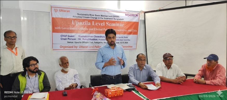ঐতিহ্যবাহী শিবসা ও হাঁড়িয়া নদী খনন করে পাইকগাছা অববাহিকায় টিআরএম প্রকল্প বাস্তবায়ন, পৌরসভা সহ ১০টি ইউনিয়নের উপকূলীয় টেঁকসই বেড়িবাঁধ নির্মাণ ও উপজেলার জলাবদ্ধ এলাকার খাস খাল অবৈধ দখল মুক্ত করে খননের মাধ্যমে নিষ্কাশন ব্যবস্থা কার্যকর করার দাবিতে আলোচনা সভা ও স্মারকলিপি প্রদান করা হয়েছে। ২ মার্চ সোমবার সকালে উপজেলা অফিসার্স ক্লাবে এবিষয়ে উপজেলা পানি কমিটির সভাপতি অব. সহকারী অধ্যাপক সেখ রুহুল কুদ্দুস এর সভাপতিত্বে আলোচনা সভা অনুষ্ঠিত হয়। প্রধান অতিথি ছিলেন, উপজেলা নির্বাহী অফিসার ওয়াসিউজ্জামান চৌধুরী। এসময় উত্তরণের দিলীপ কুমার এর সঞ্চালনায় বক্তৃতা করেন, উপজেলা পানি কমিটির সহ সভাপতি মুক্তিযোদ্ধা রুহুল আমিন গাজী, অব. সহকারী অধ্যাপক সুধাংশু মন্ডল, সাধারণ সম্পাদক শেখ সাদেকুজ্জামান, মোঃ মনিরুজ্জামান, রেজাউল করিম, মনিরুজ্জামান মনি সহ কমিটির সদস্যবৃন্দ। সভা শেষে উপজেলা নির্বাহী অফিসার ওয়াসিউজ্জামান চৌধুরী’র নিকট স্মারক লিপি প্রদান করেন উপজেলা পানি কমিটির নেতৃবৃন্দ।